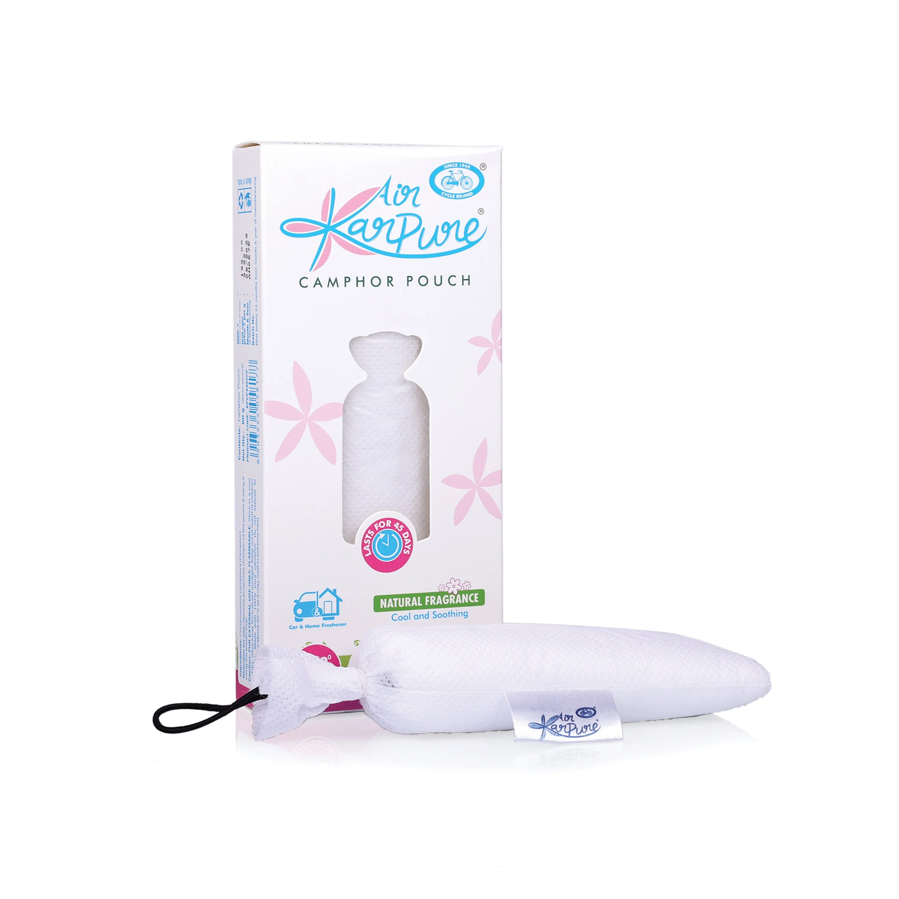 Karpure Camphor pouch is made using 100% pure Camphor and a controlled diffusion technology. The fragrance of Camphor leaves your closets, bookshelves, bags smelling good and fresh.