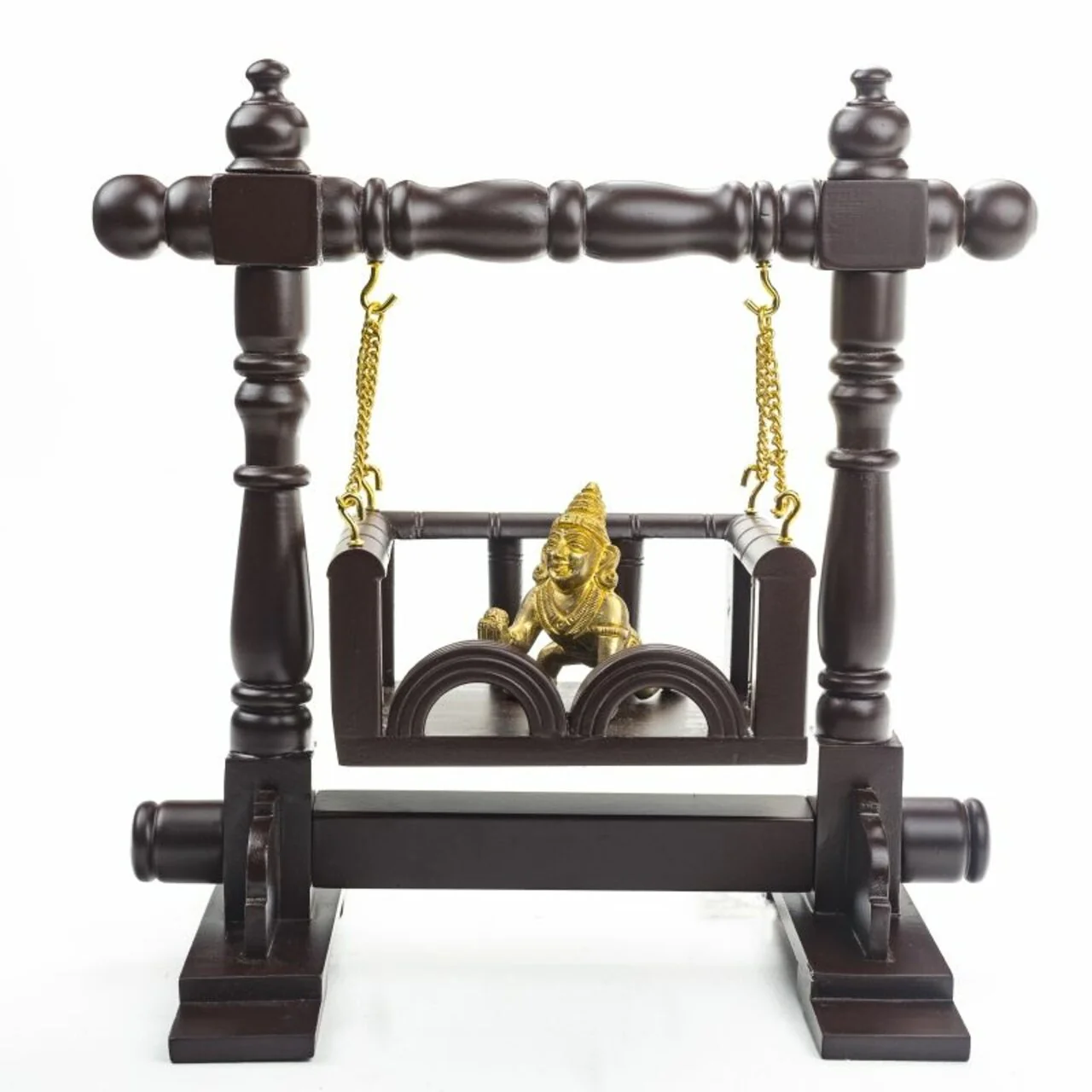 - This handcrafted jhoola or wooden swing can be used in Pooja or can be placed as a decorative art piece in your living room or office.