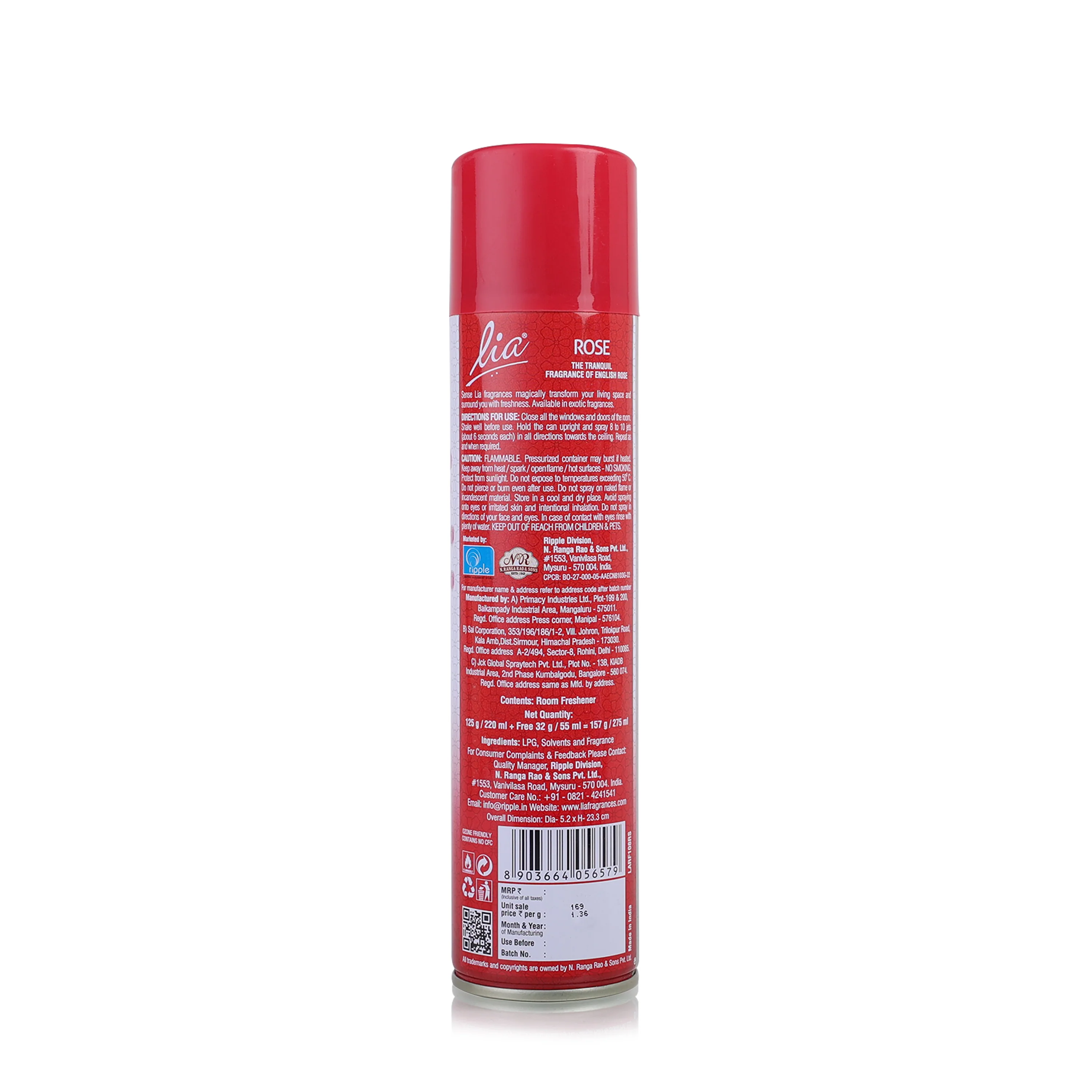 Bring home the freshness of nature with Lia room fresheners. Consumer friendly spray-through caps for ease and safety. One Can is 125gm, 25% extra.
