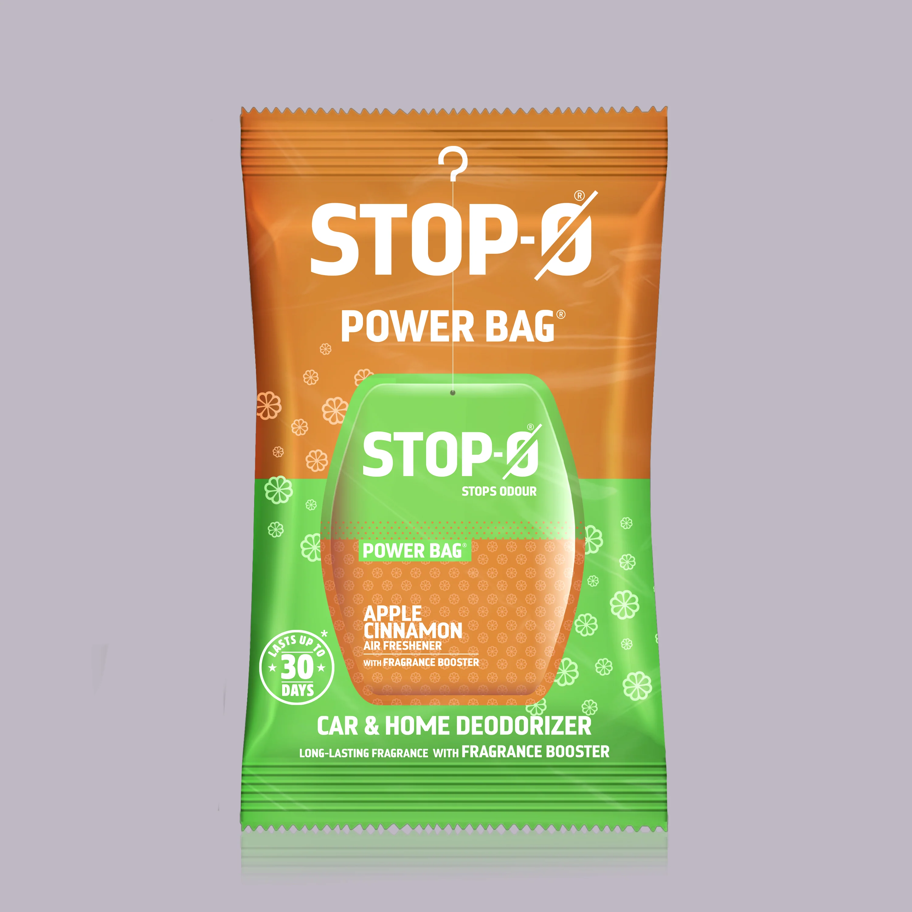 Stop-O Fragrance toilet freshener power bag with Apple Cinnamon fragrance boosters to stop the stink/odour in the bathroom and home spaces.